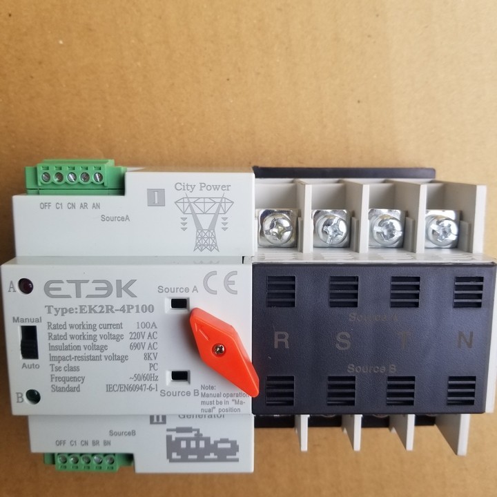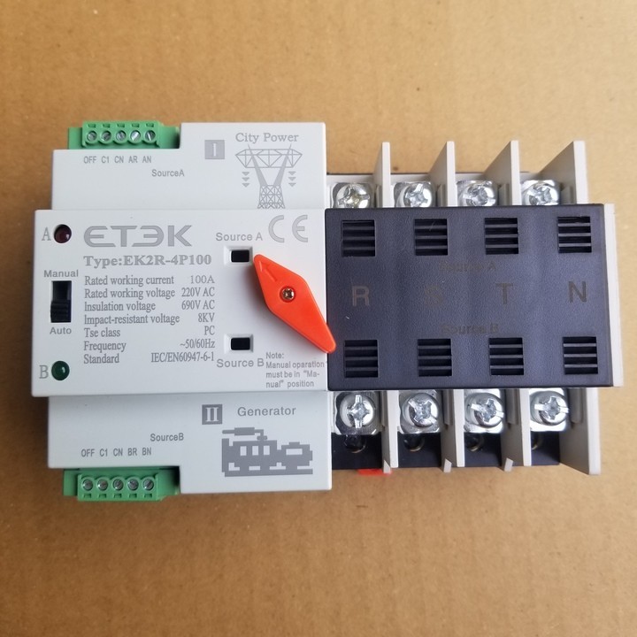 -6%Bộ ATS chuyển mạch nhanh 2 nguồn độc lập tự động ETEK 3 pha 4P 100A