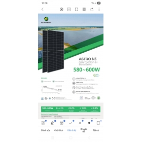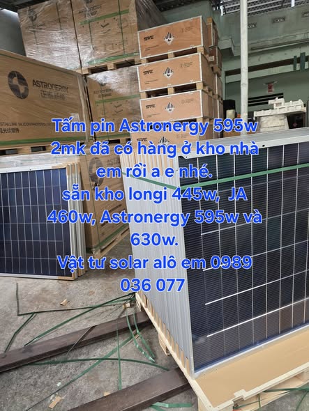 Tấm Pin NLMT hiệu ASTRONERGY Solar 595w công nghệ N type Topcon hai mặt kính hiệu suất 22.26%, hàng mới nhập sẵn kho, sẽ có giá tốt nhất cho ae và đại lý lấy số lượng nhiều nhé. Để biết thêm thông tin về sản phẩm quý khách vui lòng liên hệ: ✓ CTY TNHH NGUỒN ĐIỆN 247 ✓ 58/1 NGUYỄN HỮU CẢNH, KHU PHỐ ĐÔNG A, PHƯỜNG ĐÔNG HÒA, TP DĨ AN, BÌNH DƯƠNG. ✓ ĐT: 0989 036 077 Mr. Du.