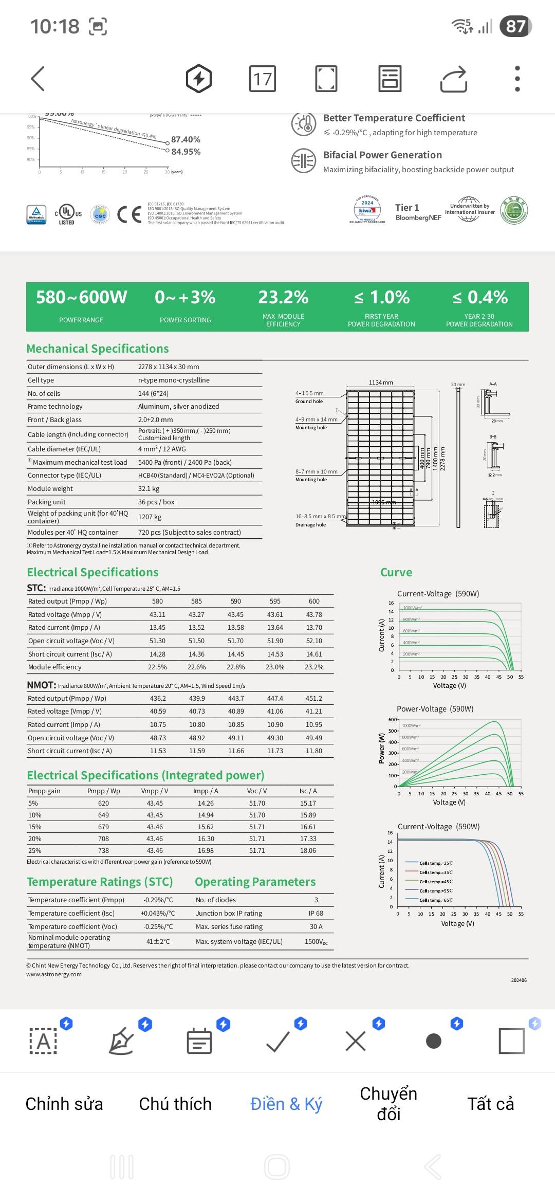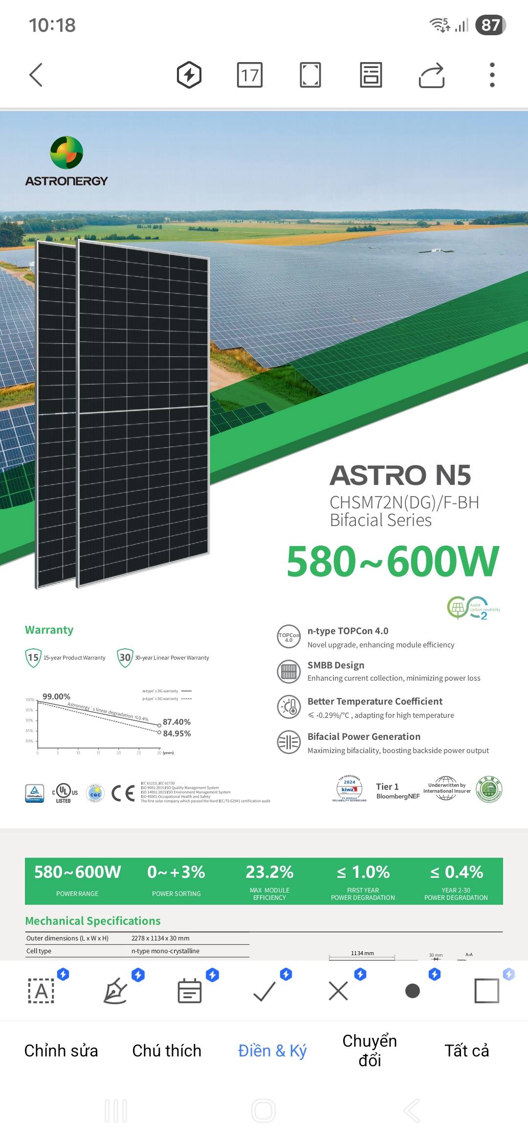 * Hãng sản xuất: ASTRONERGY Solar